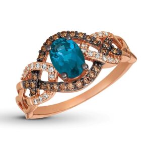 Blue Topaz Ring 1/4 ct tw Diamonds 14K Strawberry Gold