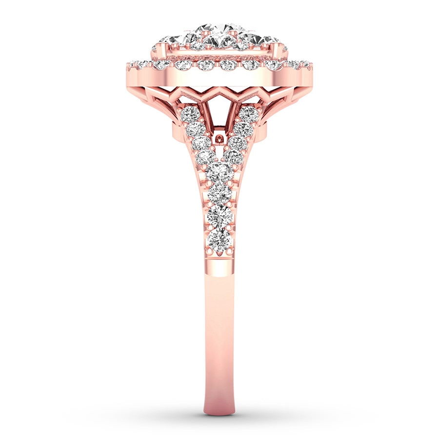 For an everlasting love, never-ending sparkle. Awash in round diamonds, this extraordinary engagement ring is crafted of 14K rose gold. The ring has a total diamond weight of 3/4 carat.