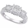 Make her wishes come true with this romantic round-shape three stone halo diamond engagement ring (3/4 ct. t.w.) beautifully designed in 14k gold, white gold or rose gold.